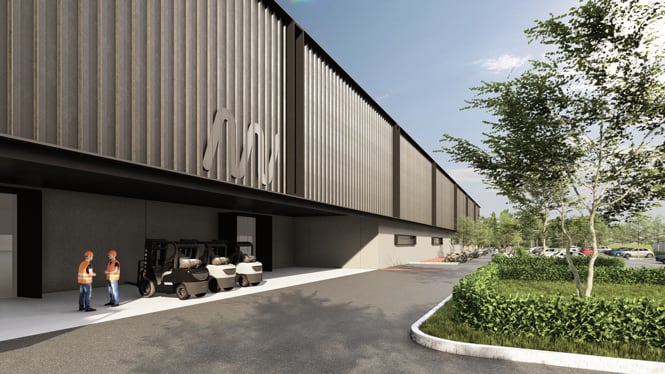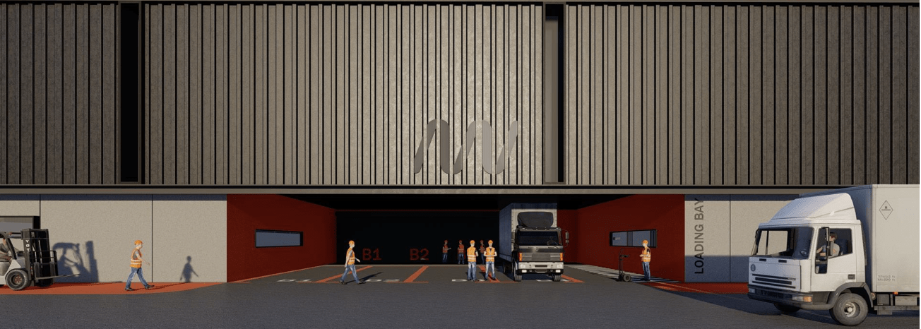 A modern industrial facility designed for efficiency, scalability, and strong brand presence. Featuring vertical metal cladding, organized circulation for logistics and staff, and integrated landscaping, the architecture reflects the company’s identity in advanced mobility and manufacturing.
