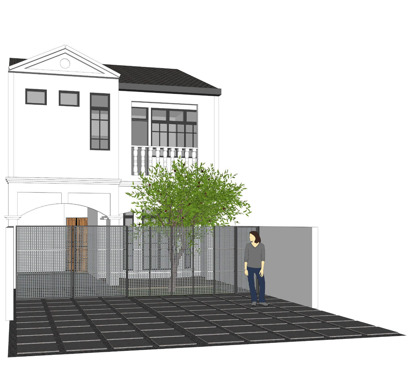 An intervention to an abandoned house. Designed to house a family of 4. By keeping its original façade, we redefine the function of its front yard to address the needs to provide more parking spaces for the visitor while keeping the green space for the family.